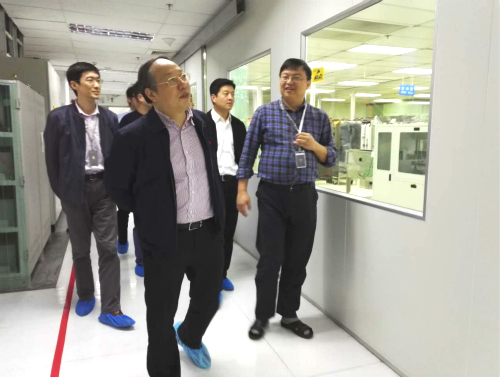 12月15日下午,重慶市經濟和信息化委員會副主任周青,渝北區副區長吳德華一行到深科技參觀交流,公司黨委書記、副總裁陳朱江,副總裁于化榮全程陪同。