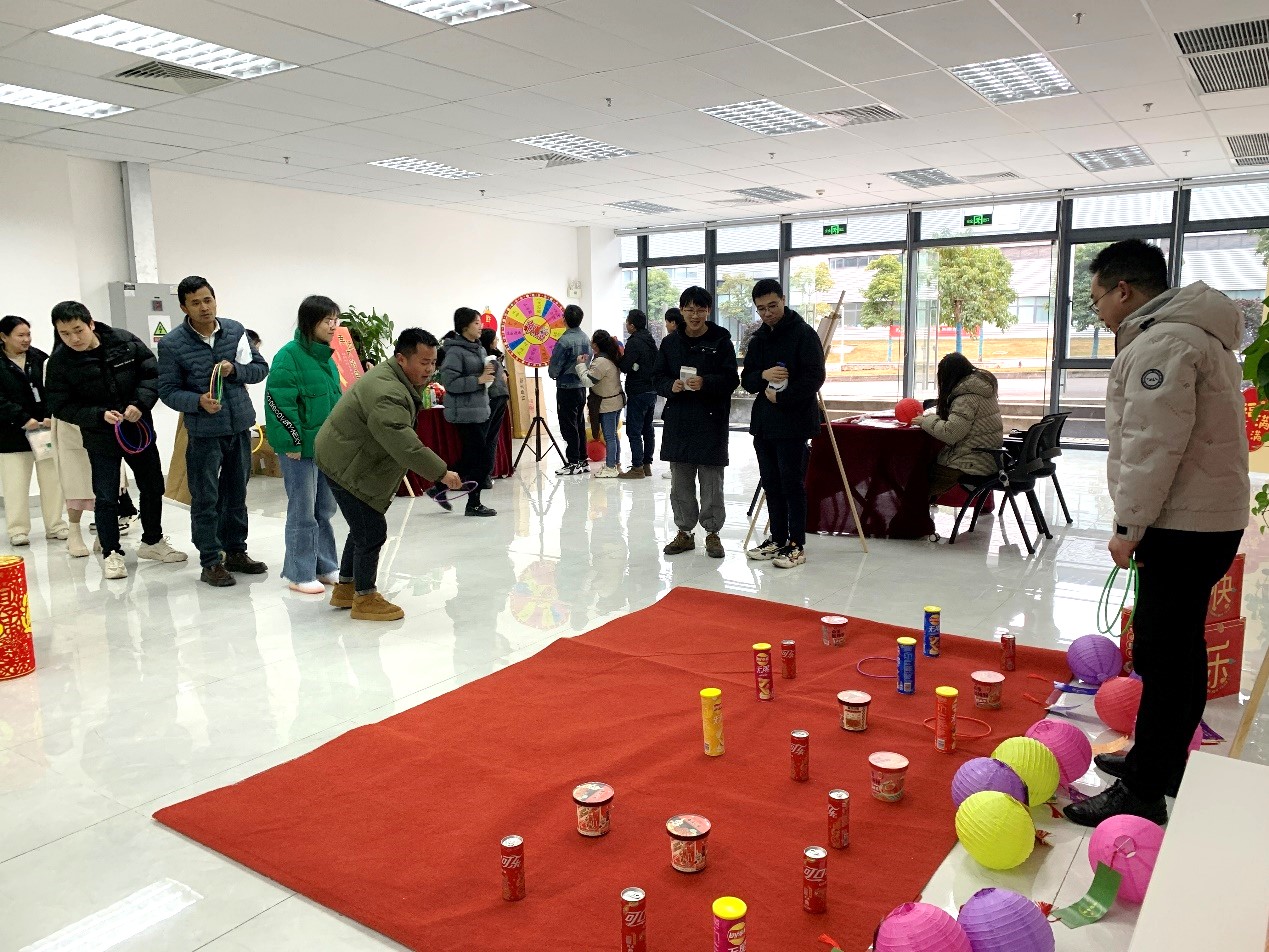 “巧猜燈謎鬧元宵”、“魚躍龍門釣錦鯉”、飛出“精”彩“鏢”出未來……,多項新穎有趣的游戲項目讓員工們摩拳擦掌、躍躍欲試,大家熱情高漲,積極參與,現場氣氛熱烈,其樂融融。